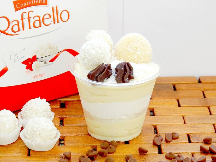 Sabor: Raffaello* Creme de Chocolate Branco* Mousse de Chocolate Branco* Creme de Chantilly de Ninho* Nutella / Creme de Avelã* Docinho com Coco* Gotas de Chocolate* Raffaello
